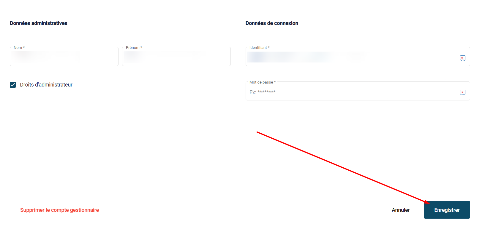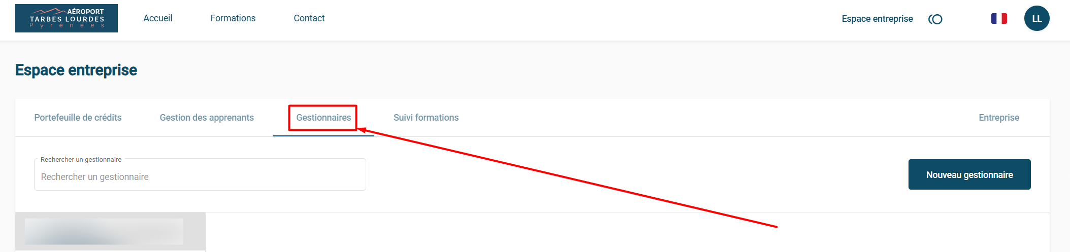 1) Allez dans votre Espace entreprise 2) Cliquez sur l'onglet Gestionnaires 3) Cliquez sur Nouveau gestionnaire 4) Saisissez les informations nécessaires à la création du compte de votre nouveau gestionnaire, puis cliquez sur Enregistrer